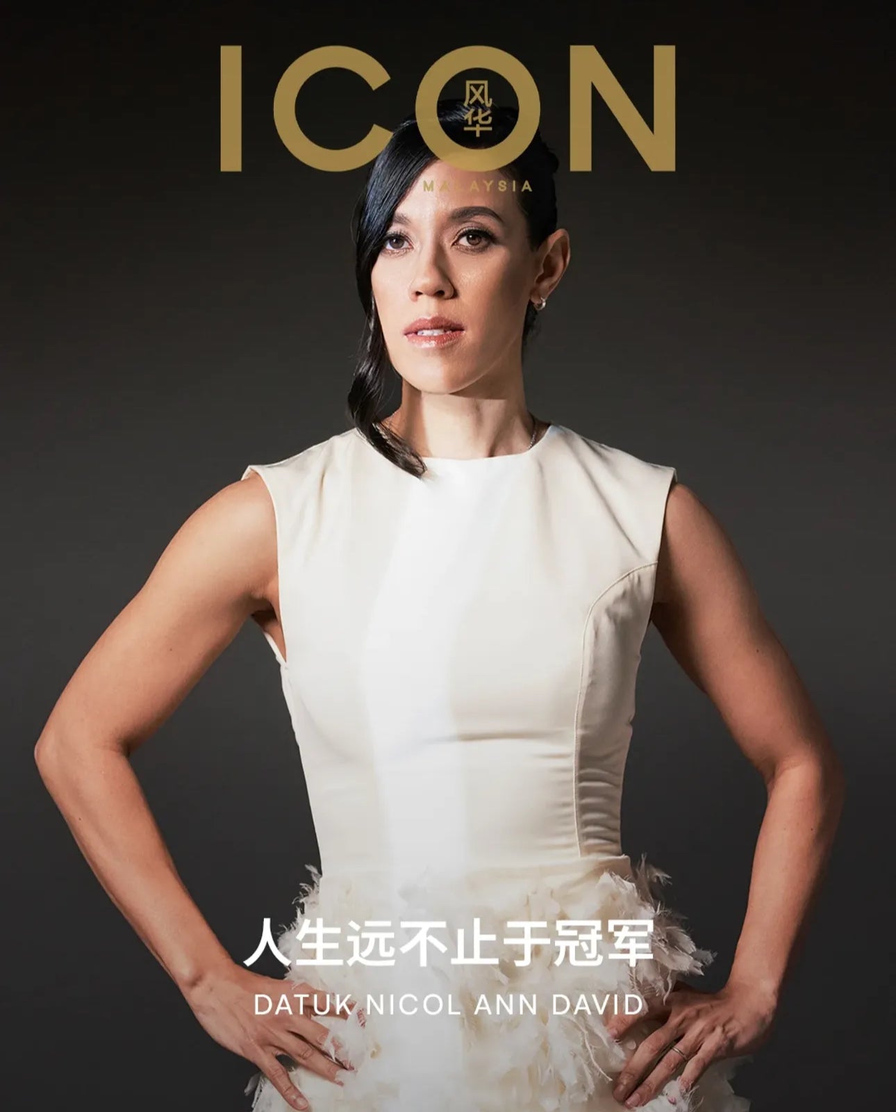 Malaysia's squash legend Datuk Nicol David graces the pages of ICON Malaysia's 18th Anniversary Celebration, dressed in DIKSON MAH.